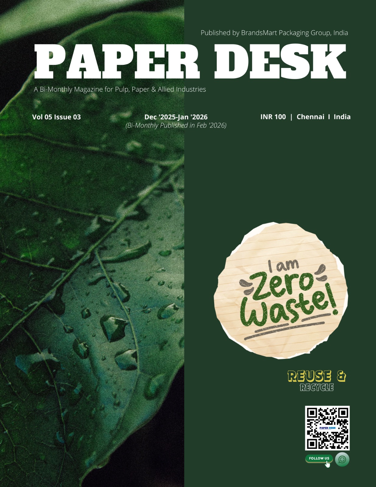 PAPER DESK, A Bi-Monthly Magazine proudly launched by one of the nation’s leading packaging groups BrandsMart Packaging group. The digital version & printed magazine reaches to all Pulp & Paper Mills, OEMs, Packaging Companies, Industry professionals, Industry Institutions, Service providers, Dealers & Distributors of Pulp, Paper & Conversion Industries for free of cost.
